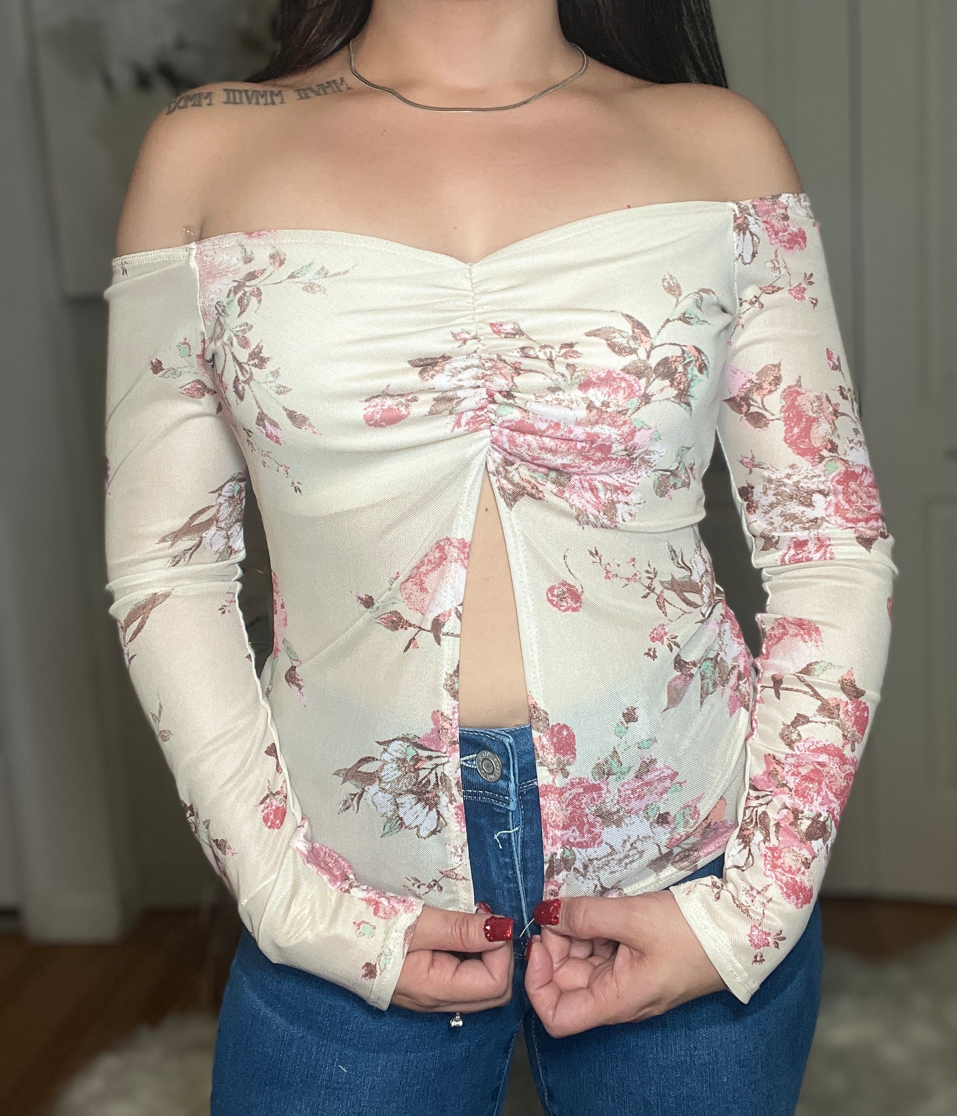 Unleash your bold and daring side with our FLORAL MESH TOP! This show-stopping piece features a unique FLORAL PRINT, OFF SHOULDER design, and a FLYAWAY front slit detail that adds an extra element of excitement. With its stretchy fabric, you'll have the freedom to move and conquer any challenge that comes your way.