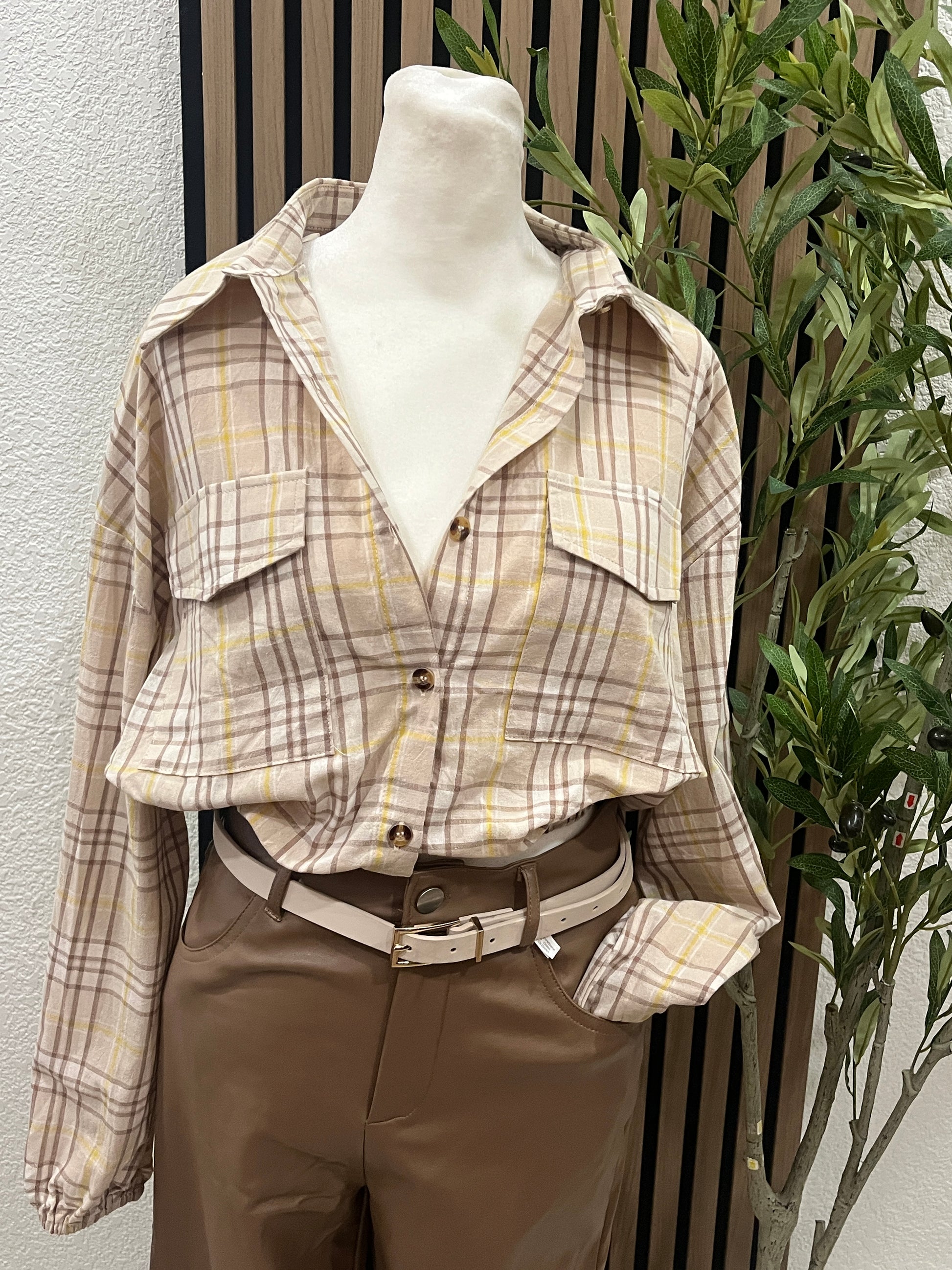 Layer up with this charming plaid button-down that's equal parts cozy and put-together. The relaxed fit features an elastic waist for all-day comfort, while dual chest pockets keep your essentials within reach. Long sleeves and a classic plaid pattern make it the perfect go-to for casual days that call for effortless style.