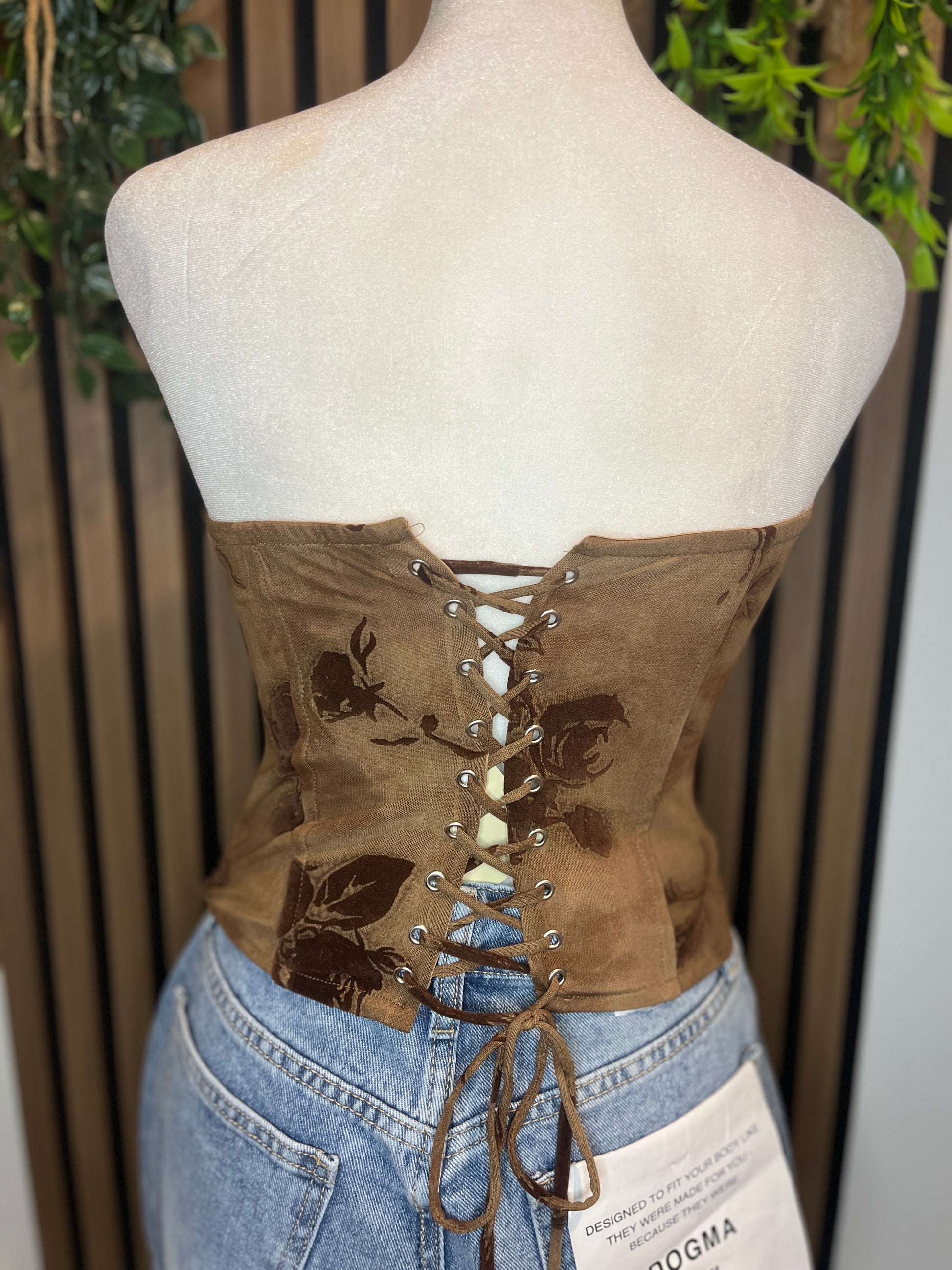 Edgy lace-up corset tube top designed to turn heads and accentuate your silhouette.
